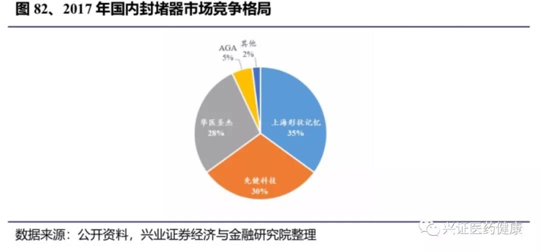 先天性心脏病是先天性畸形中最常见的一类,约占各种先天畸形的28%,在先天性心脏病中,以室间隔缺损、房间隔缺损、动脉导管未闭、肺动脉瓣狭窄发病率最高。随着封堵装置及内外科介入治疗技术的不断成熟,封堵器在房间隔缺损、室间隔缺损和动脉导管未闭等领域的应用越来越广泛。国外圣犹达占据全球市场第一大份额,国内拥有封堵产品注册证的有先健科技、北京华医圣杰科技、上海形状记忆(乐普医疗子公司)三家,共占据了国内市场的90%以上,我国心脏封堵器已经实现进口替代,其中先健科技已经成为全球第二大先心封堵器供应商、金砖四国第一大供应商。